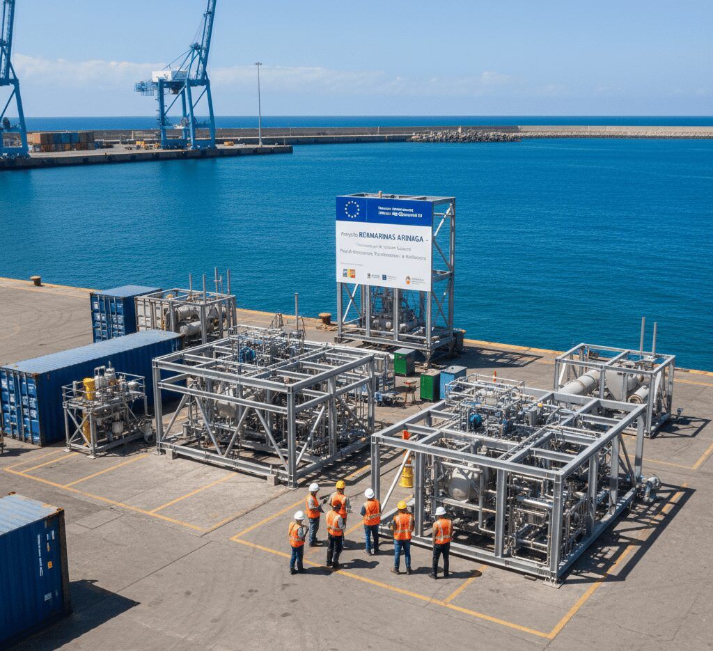 Obra de construcción, instalación y acondicionamiento de un laboratorio de hidráulica marina para la plataforma de ensayos marinos del Puerto de Arinaga, en el marco del Proyecto RENMARINAS ARINAGA, acogido al Programa RENMARINAS DEMOS, financiado por la UNIÓN EUROPEA – NEXTGENERATION EU en el marco del Plan de Recuperación, Transformación, y Resiliencia.