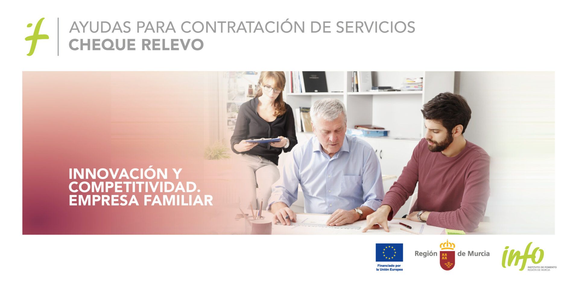 El Cheque Relevo es un programa de ayudas del Instituto de Fomento de la Región de Murcia (INFO). Esta convocatoria, disponible desde el 25 de marzo de 2025 hasta el 31 de marzo de 2026, está diseñada para impulsar la contratación de servicios avanzados de asesoramiento y asistencia técnica en materia de innovación dirigidos específicamente a empresas familiares.
